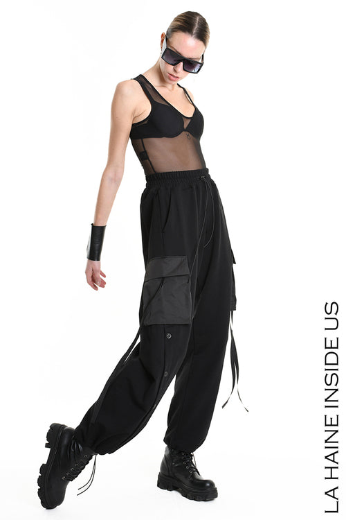 LH W5199 TROUSER Over Wide Fit Embossed Jersey UNISEX D Black