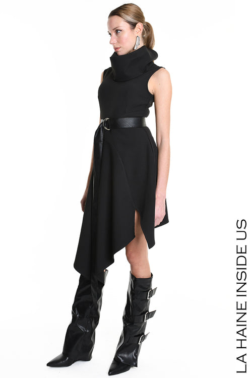 LH W5174 DRESS Asymmetric Tecno Stretch & Faux Leather Black
