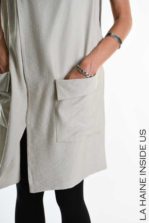 LH M1246 CARDIGAN Doubled Sleeveless UNISEX D Beige