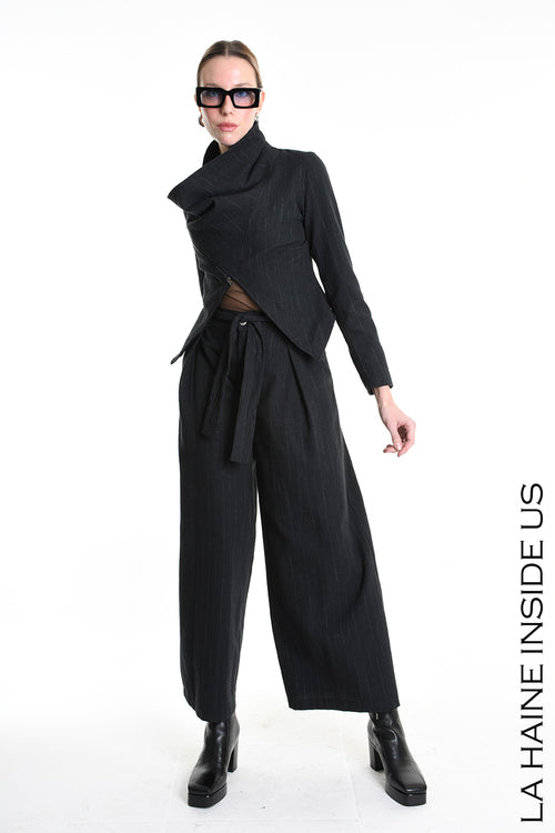 LH W5176 JACKET Asymmetric Flannel Pinstripe Black