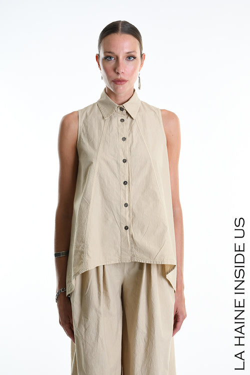 LH W5267 SHIRT Over Asymmetric Cotton Crumpled Dyed Sand