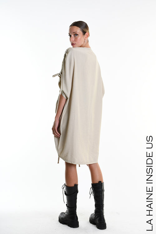 LH W5309 DRESS Over Fluid Viscose Embossed Beige