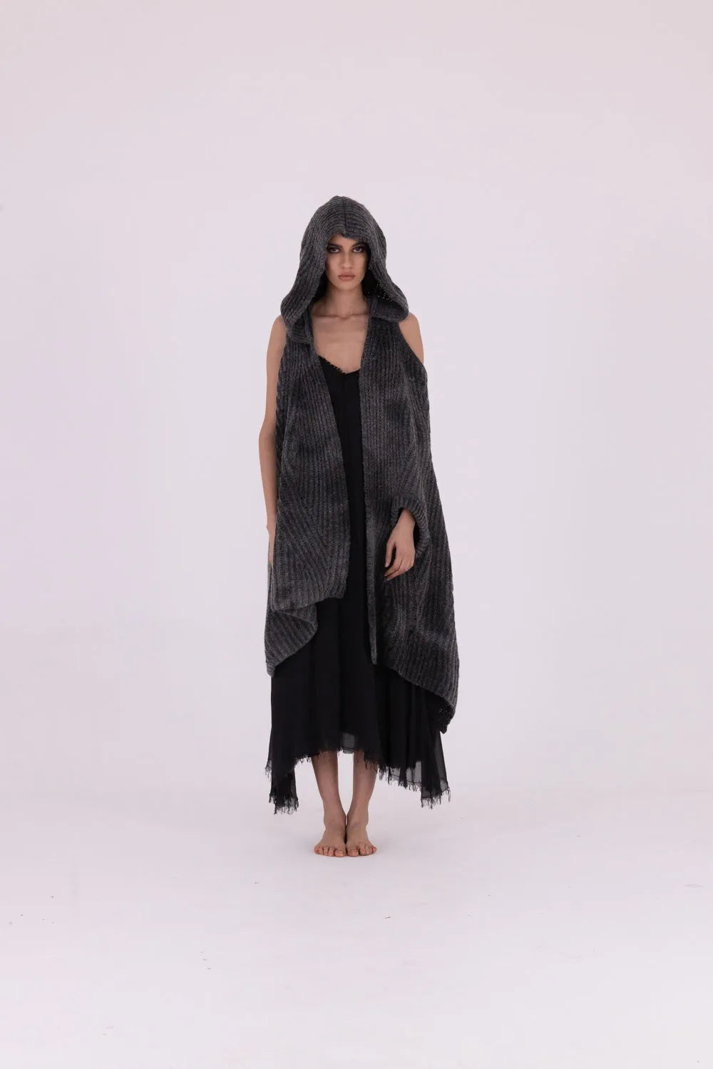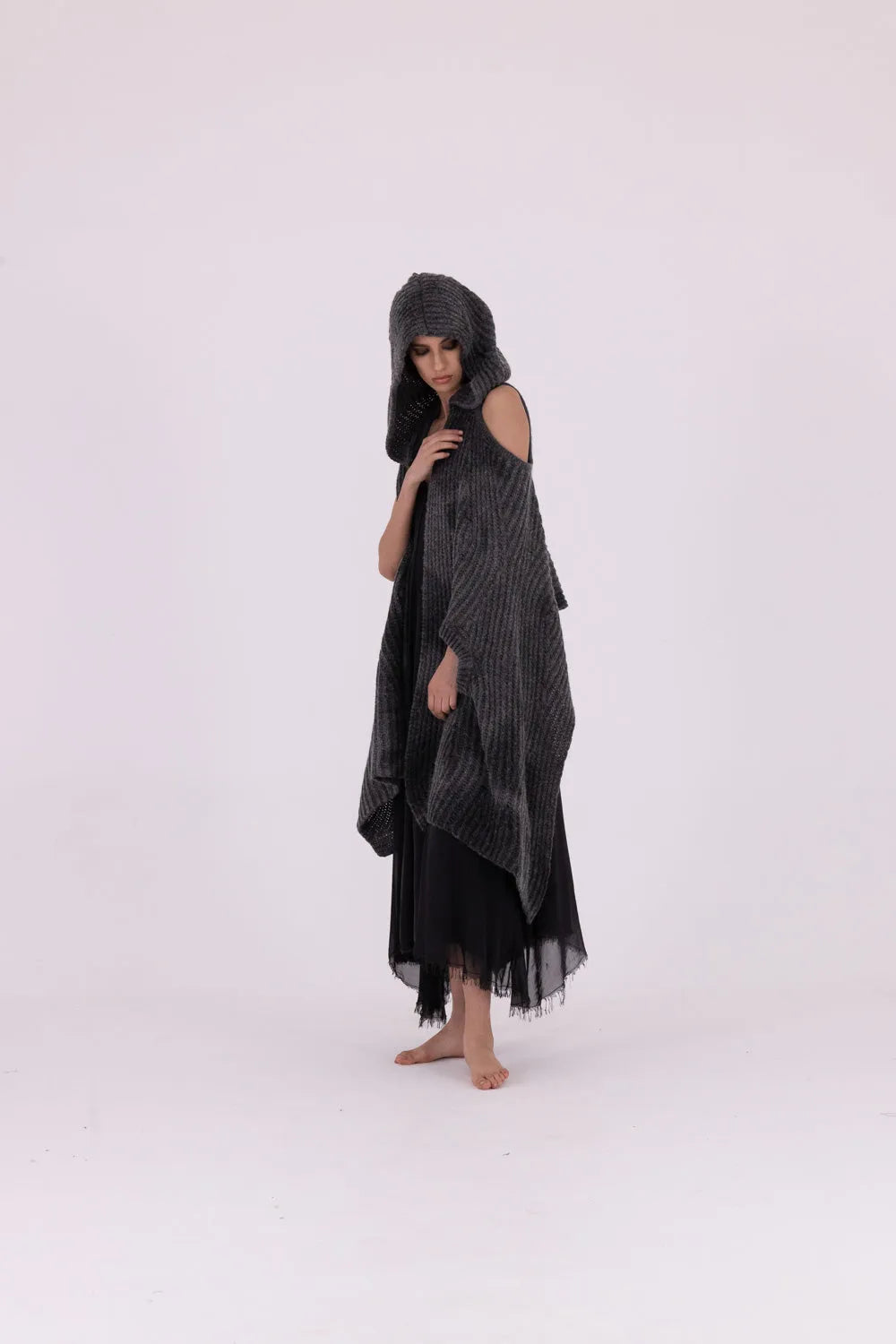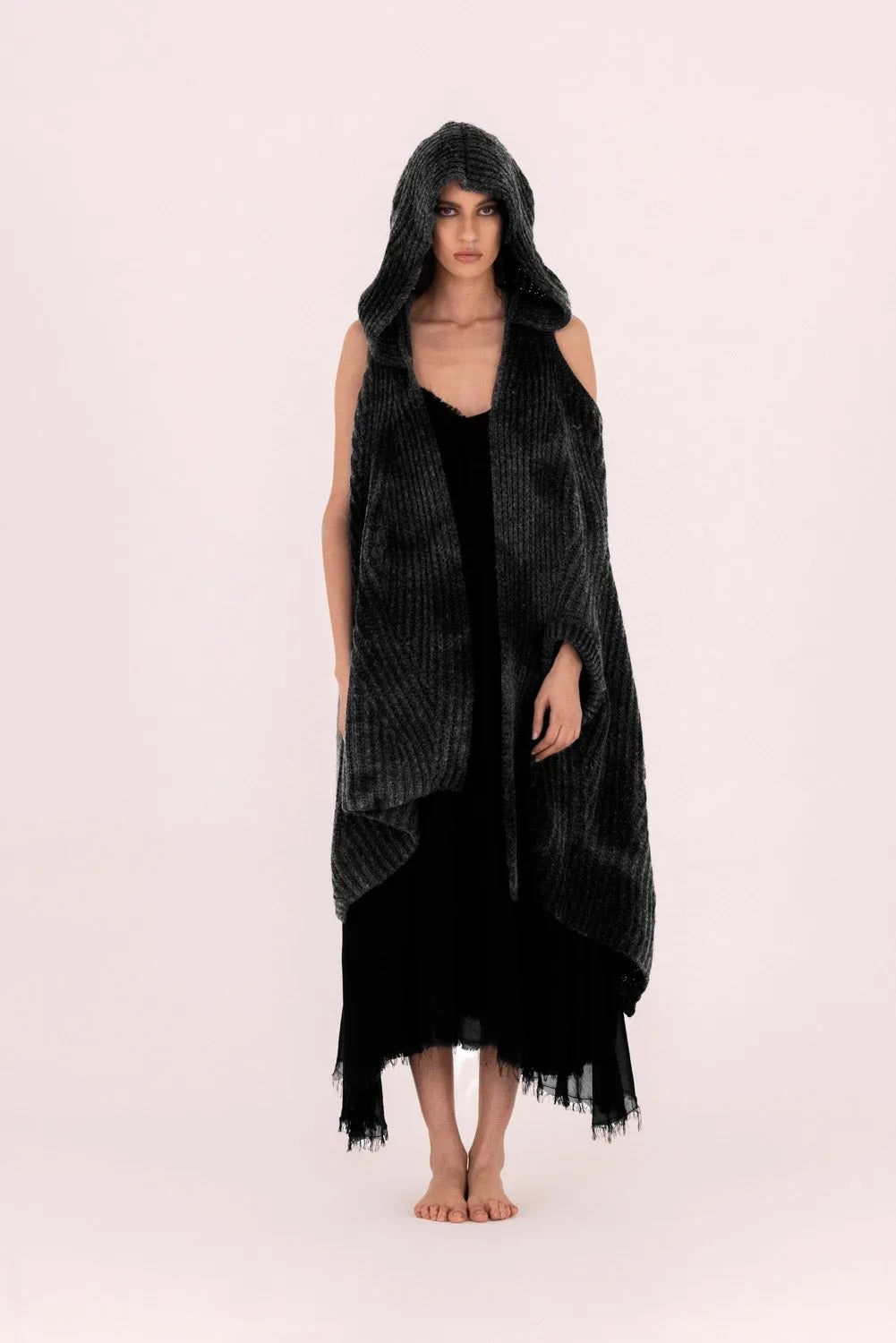 CARDIGAN KNIT ASIMMETRICO CON OBLO' REGOLABILI TINTO FREDDO E SPRAY FATTO A MANO SFUMATO