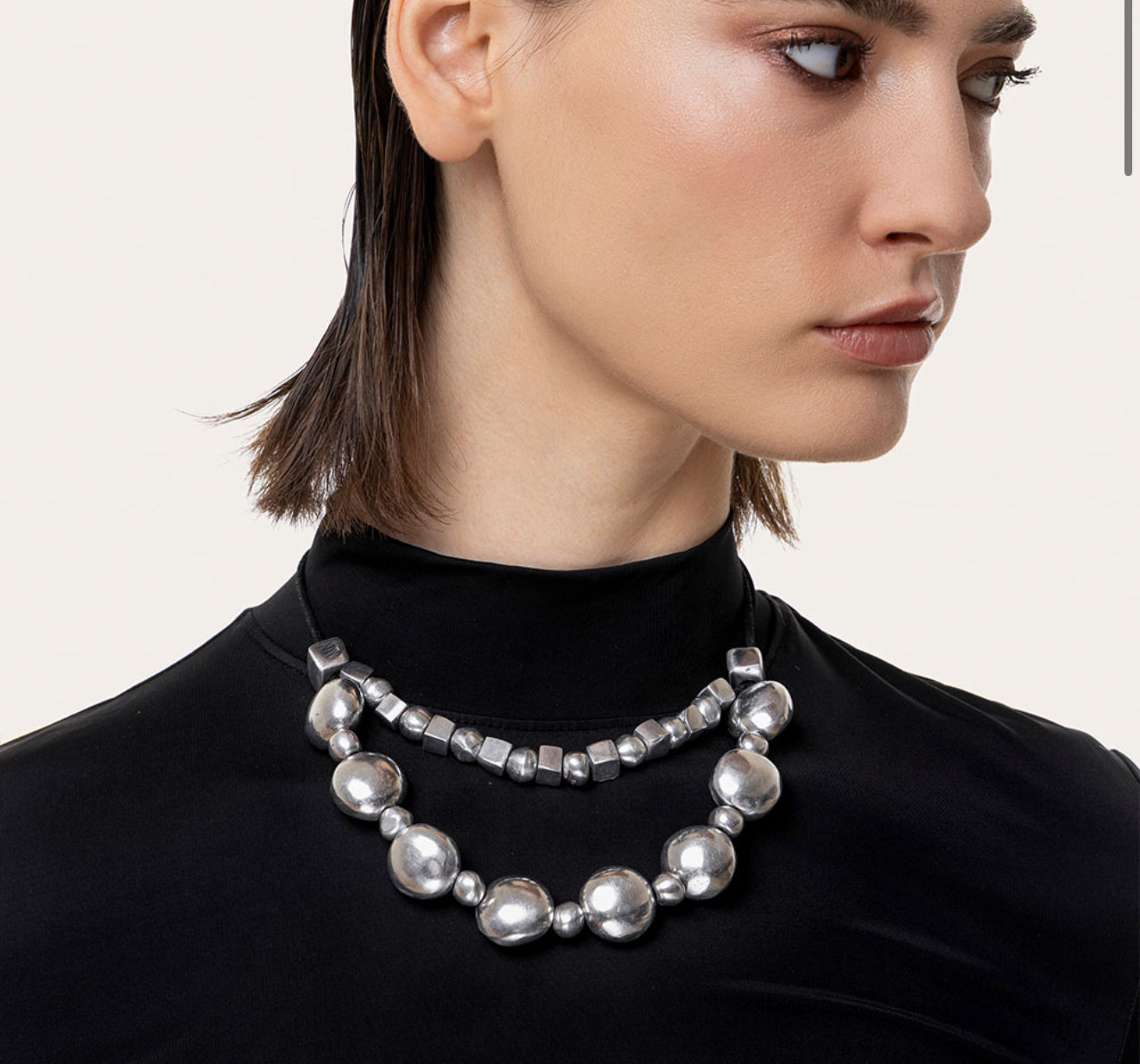 AL02248 - COLLIER DEUX FILES RONDES CARREUX ET BOULES