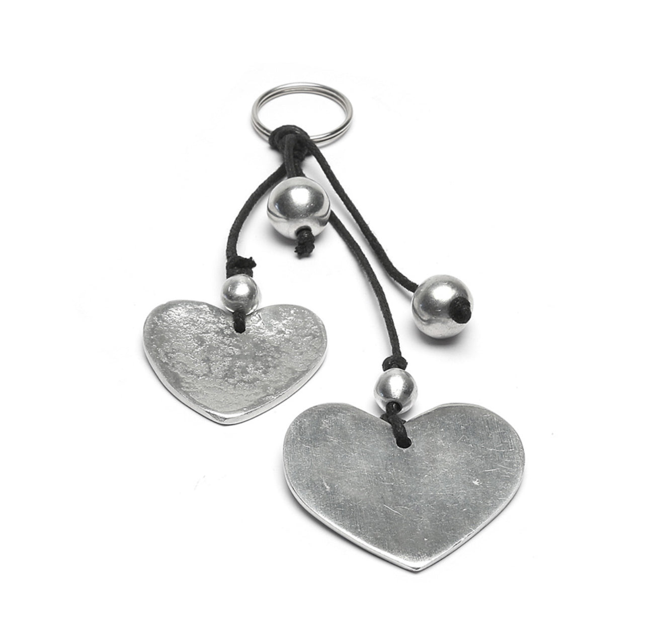 Portachiavi con cuori. Realizzato a mano in alluminio 100% riciclato.