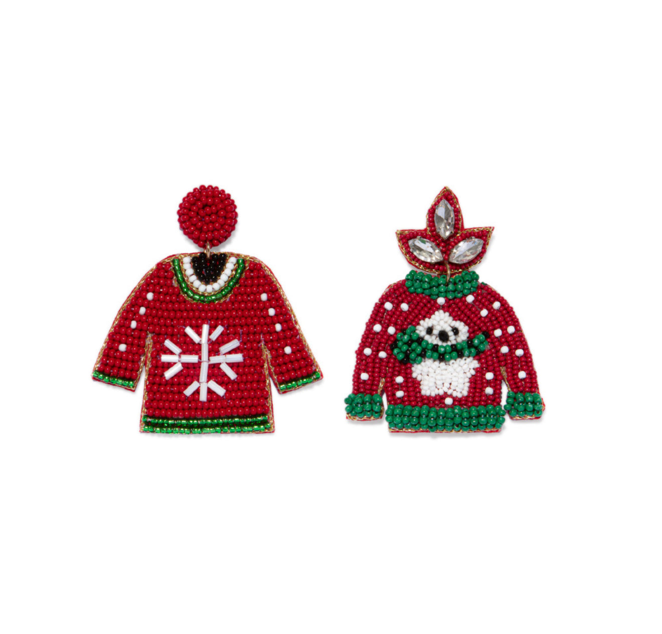 Orecchini di Natale a forma di maglione natalizio. Ogni gioiello è realizzato manualmente con perline di vetro colorate applicate su feltro. Chiusura a farfalla. Nickel tested. Gioielli fatti a mano, unici e artigianali, perfetti per tutti i tuoi look o come idea regalo.