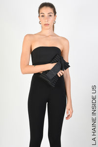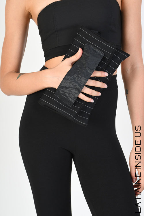Pinstripe punto milano pochette - Doubled cloth - Velcro closure - Front nylon sash