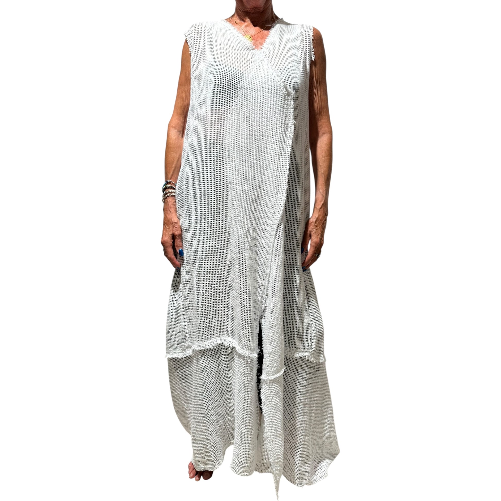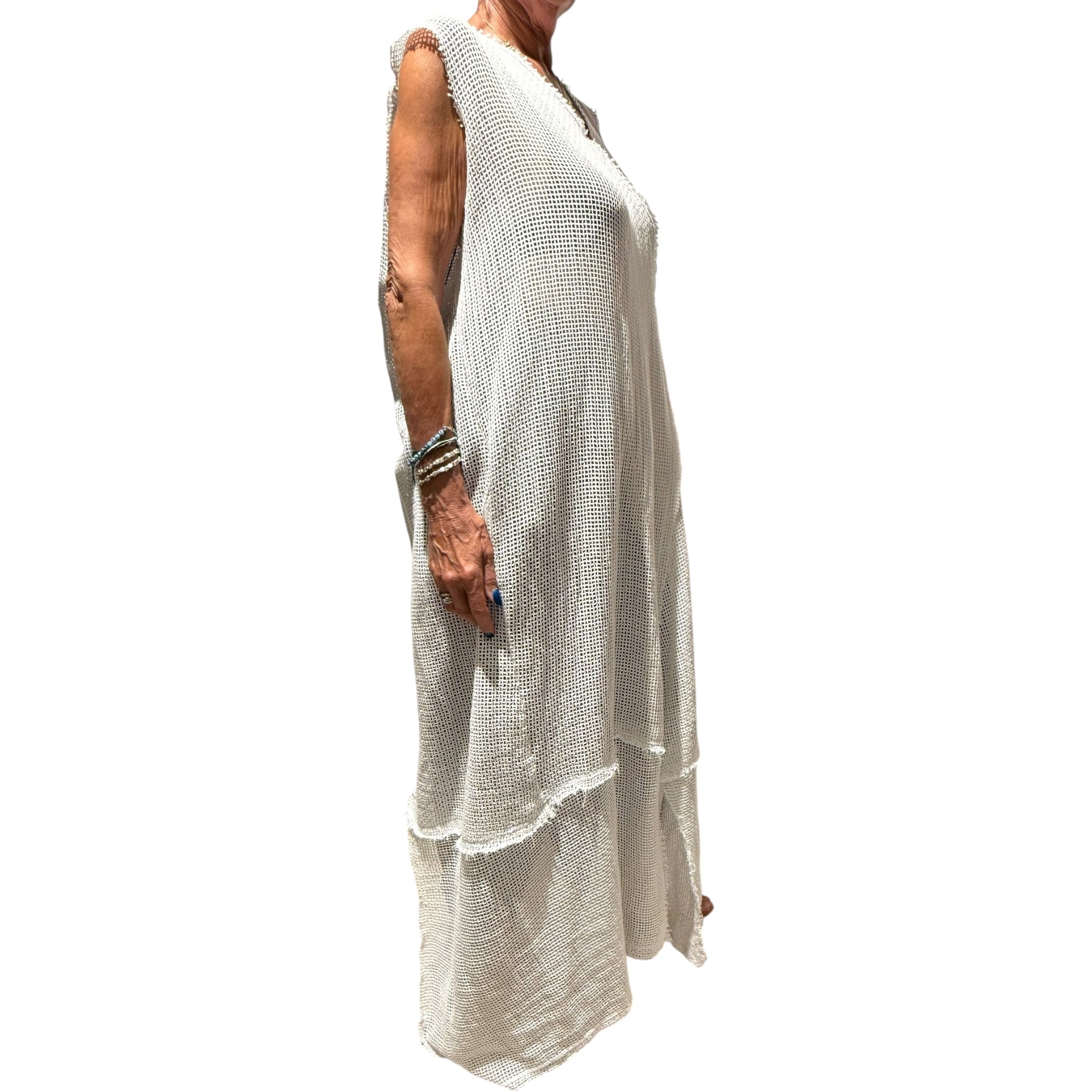 Esalta il tuo stile con il top lungo rete .Realizzato al 100% in morbido cotone, questo top unico nella taglia garantisce il massimo comfort ed eleganza. Aggiungi un tocco di giocosità al tuo guardaroba con questo capo versatile e sempre alla moda.