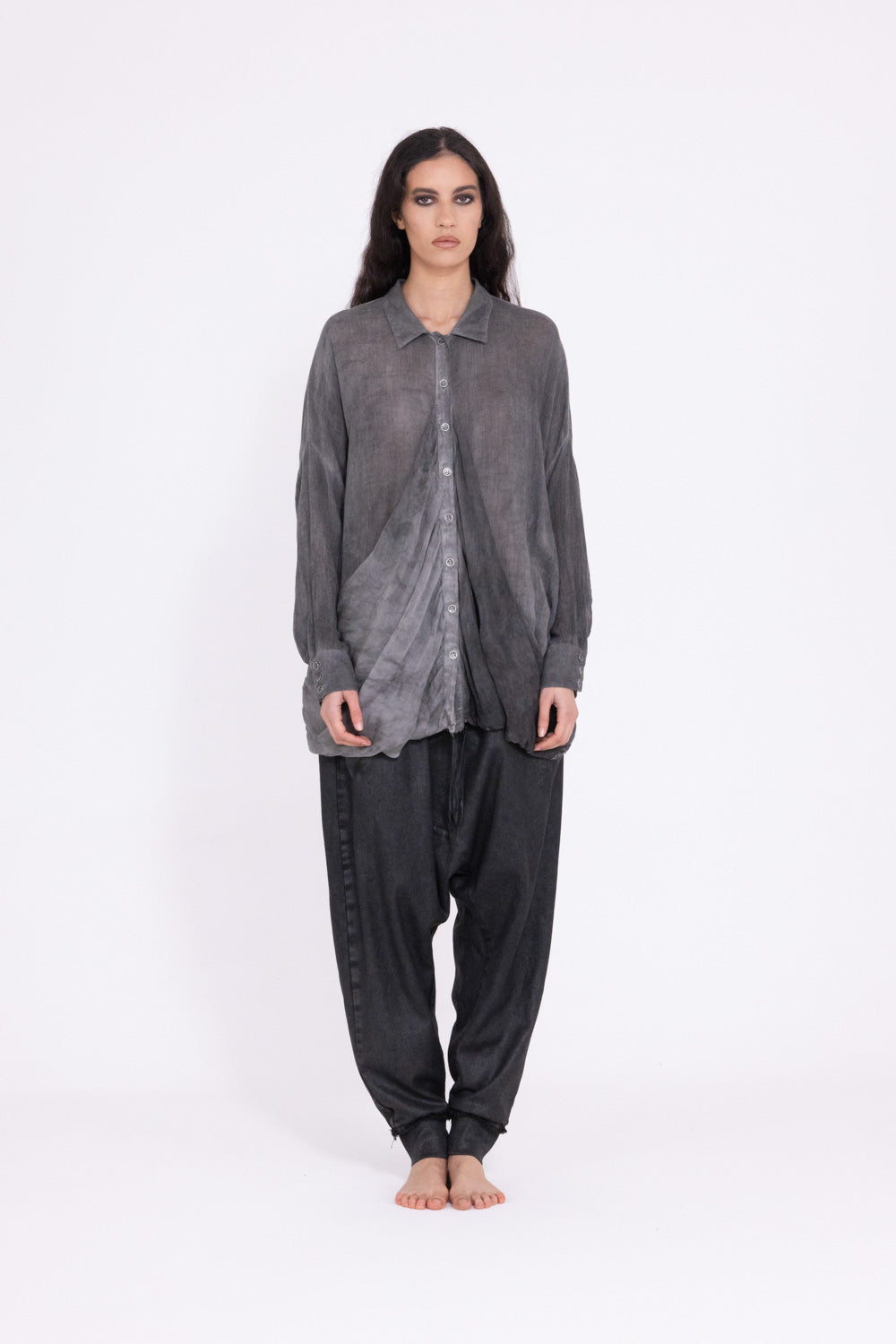 Camicia in viscosa/lana, tascone a gronda in viscosa/seta, manica calata, tinto freddo