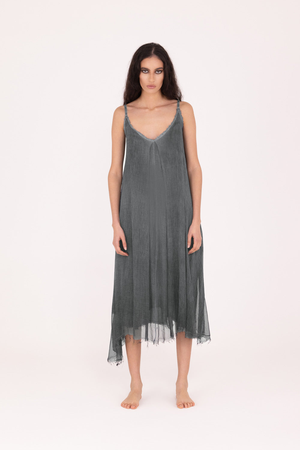 Abito lungo linea sottoveste, con spalline regolabili, doppio strato in crepon di viscosa e viscosa/lana ,con tasche, tinto freddo