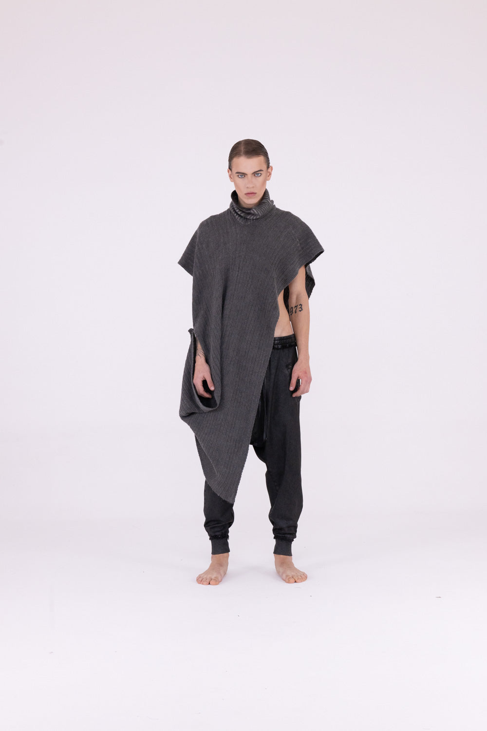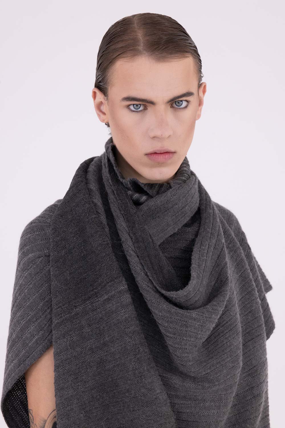 STOLA KNIT CON COLLO ALTO ASIMMETRICA LAMINATA