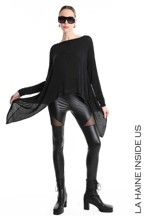 LH W5174 DRESS Asymmetric Tecno Stretch & Faux Leather Black