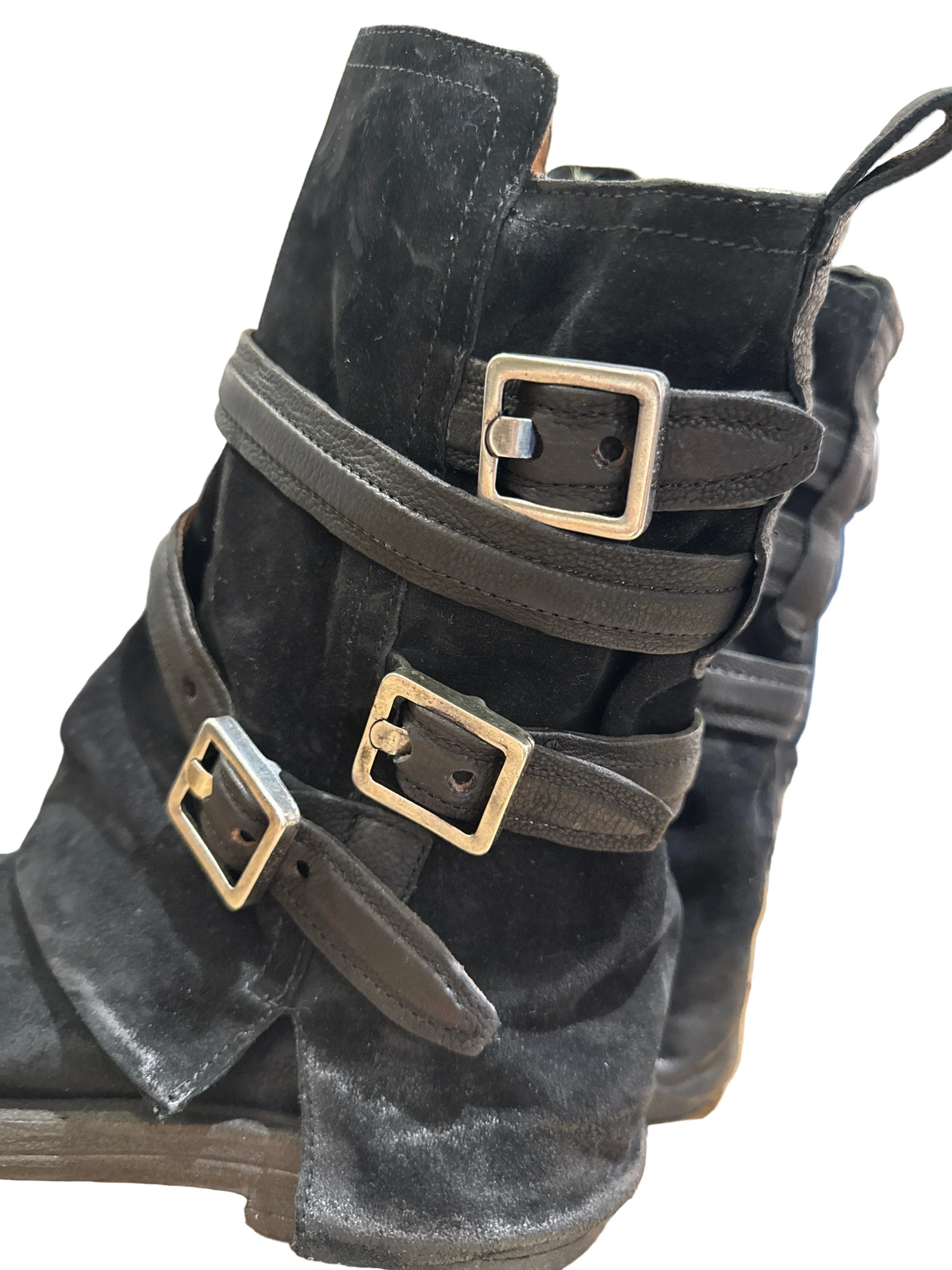 La famiglia PAST di A.S.98 è un omaggio al fascino vintage, con scarpe basse, stivaletti beatles e modelli arricchiti da borchie, moschettoni o accessori minimal. Pensata per chi ama lo stile steampunk in chiave sobria, unisce carattere e raffinatezza senza eccessi.