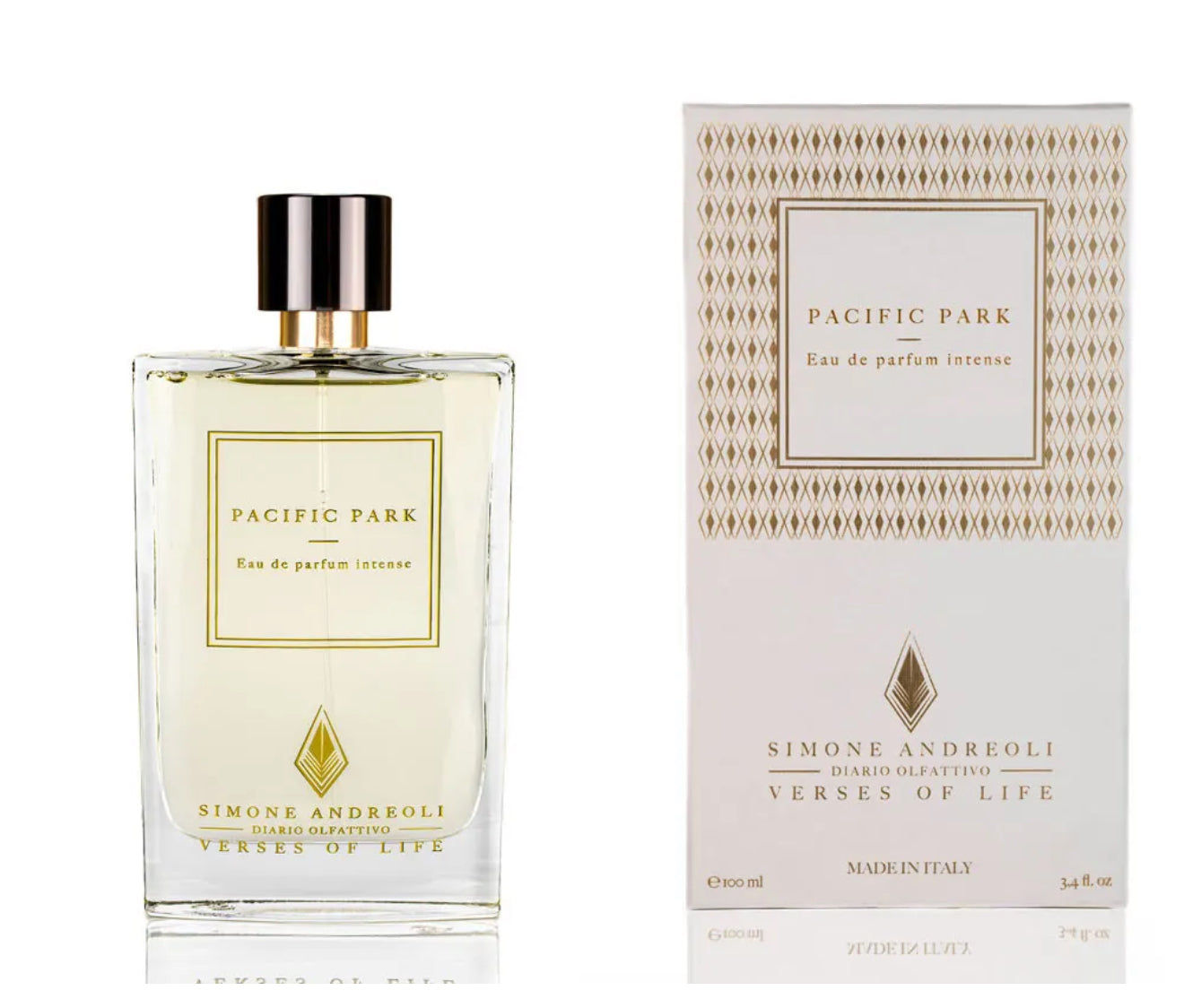 Simone Andreoli Pacific Park EDP è un' eau de parfum fiorita per uomini e donne. Evoca ricordi e sensazioni ritrovate di un'infanzia leggera. Un bambino che giocava senza timori e che masticava caramelle. È una pellicola distante dal presente, e pur sempre attuale e vivida.