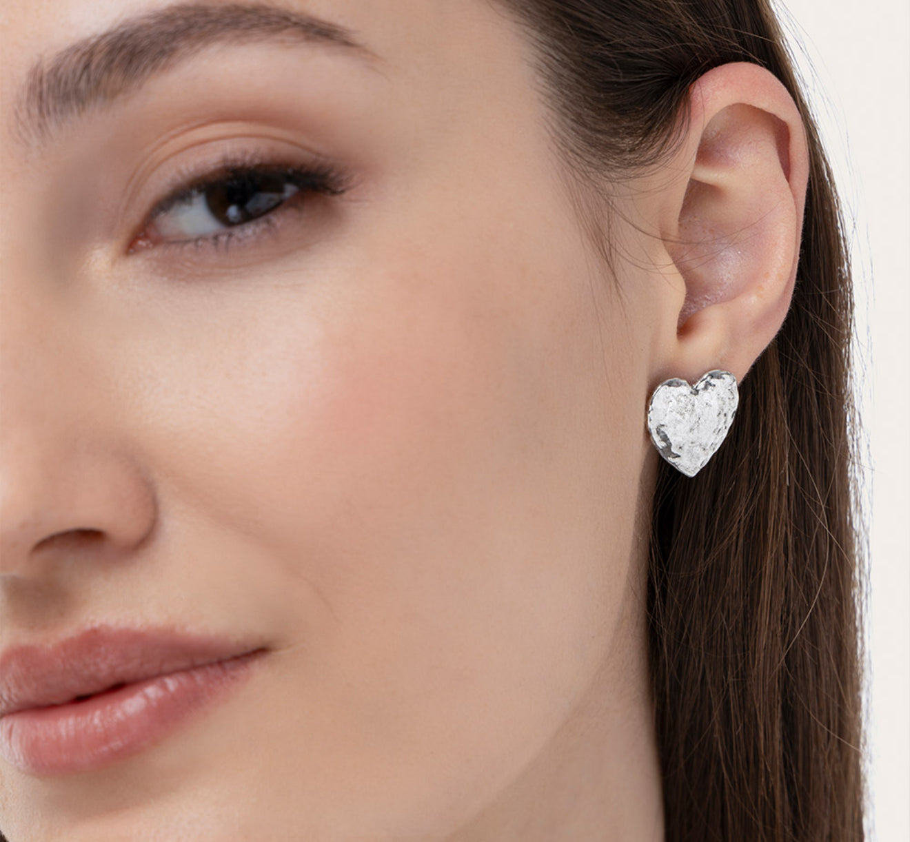 Gli orecchini cuore battuto sono con Chiusura a farfalla. Materiale: placcatura argento artigianale. Nickel tested. Lavorazione artigianale.